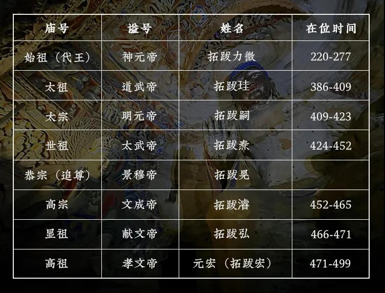 部分北魏帝王世系: