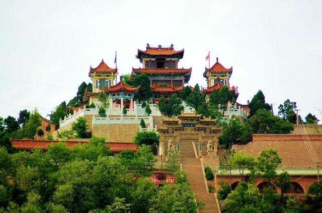 富縣太和山久負(fù)盛名,原名鳳凰山,發(fā)源于白云山山脈,自北向南蜿蜒數(shù)仟里伸展到富縣城北。太和山山勢(shì)陡峭,氣勢(shì)雄偉。山之左右兩側(cè),極對(duì)稱的伸出兩座側(cè)峰,猶如兩條蒼龍,與挺拔渾圓的太和山山峰形成二龍戲珠之勢(shì),山下五條河流、五條道路在山前穿梭而過,形成五水、五路相交之勢(shì),富縣古稱“五交城”,即得名于此。更有趣的是,站在山頂俯瞰,周圍東山、西山、柏山、駱駝山四座山的山峰不但低而且皆面朝太和山,形成四山朝拜的景象。