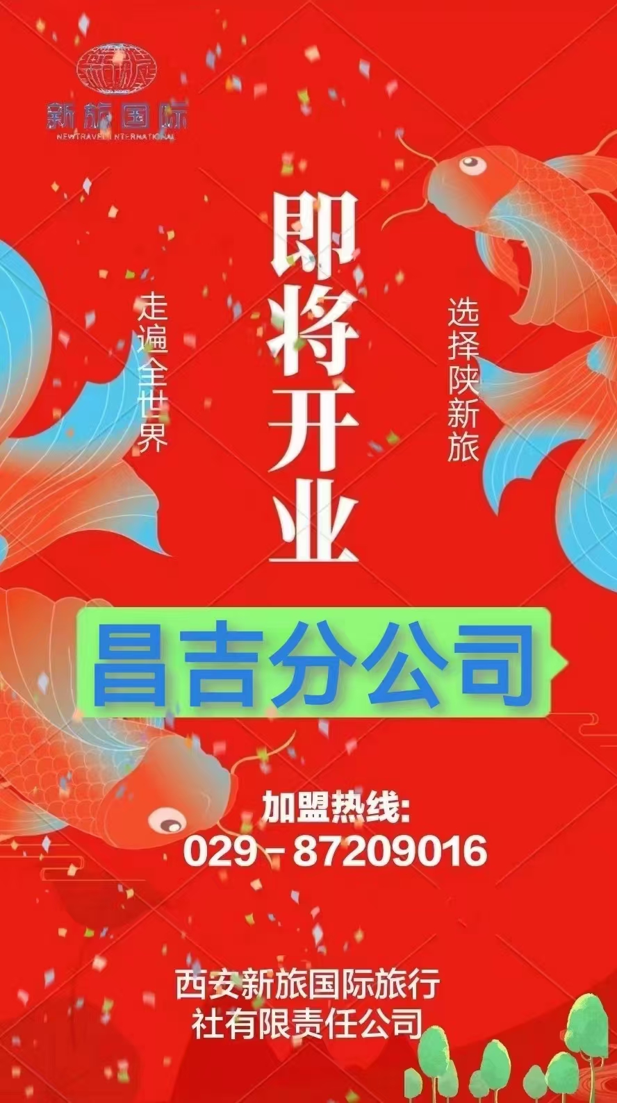 西安新旅國際旅行社有限責(zé)任公司新疆昌吉分公司 即將開業(yè)