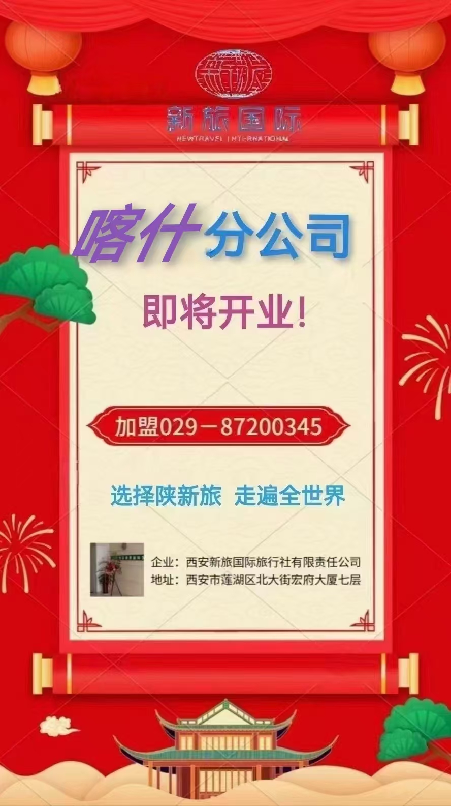 西安新旅國(guó)際旅行社有限責(zé)任公司喀什分公司 即將開(kāi)業(yè)