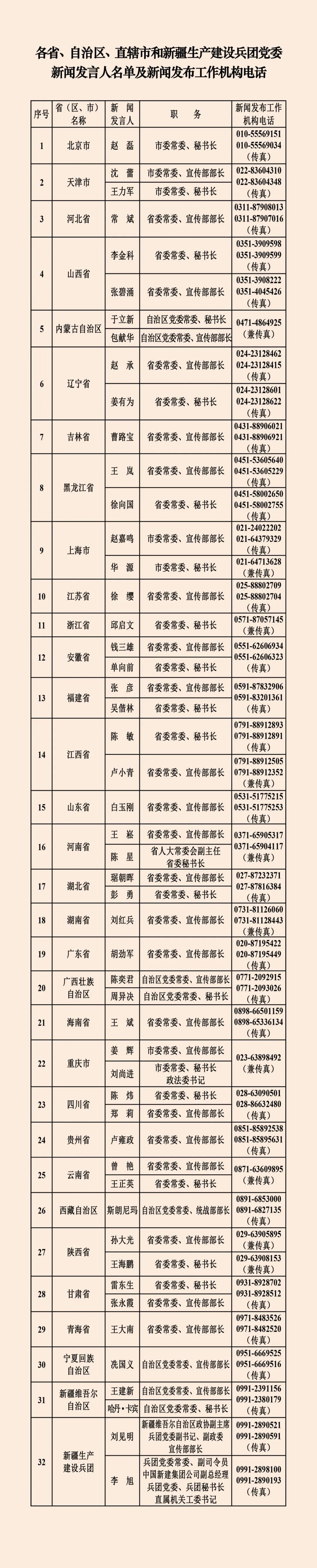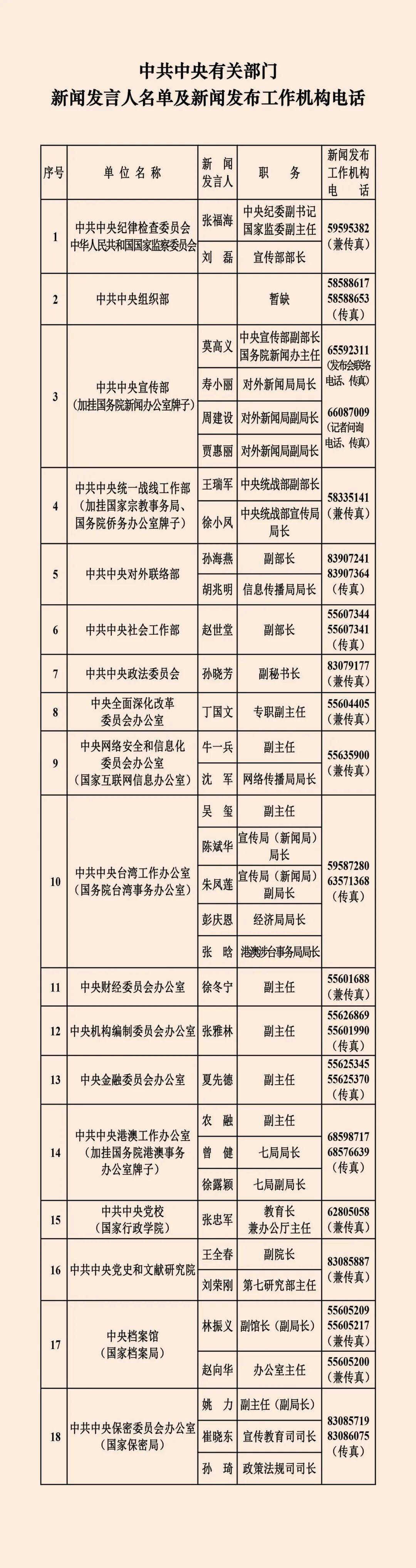 中央國家機(jī)關(guān)和地方2026年新聞發(fā)言人名錄(附電話)