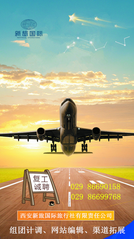 歡迎各位有志于旅游業(yè)的人士加入西安新旅國際旅行社有限責(zé)任公司,攜手共進(jìn),共謀發(fā)展!