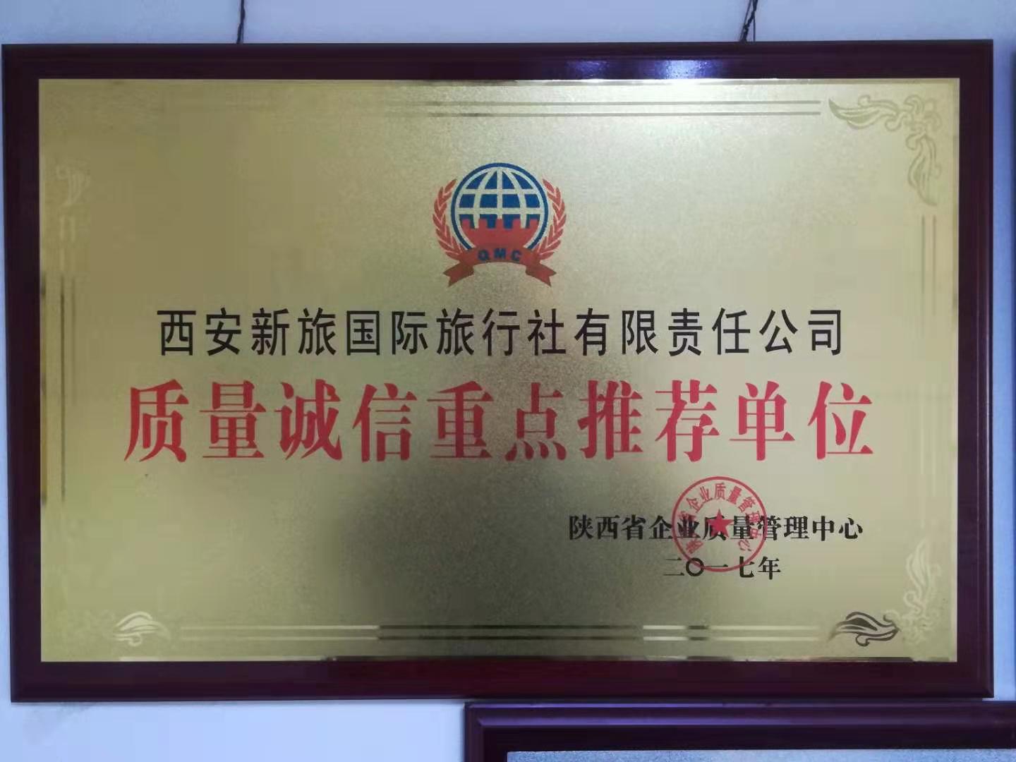 4、口碑良好,信譽(yù)保證。西安新旅國際旅行社是中國旅行社協(xié)會(huì)會(huì)員單位,陜西省《質(zhì)量誠信重點(diǎn)推薦單位》和《陜西省AAA級(jí)信譽(yù)單位》,西安市旅游局推薦的《旅行社責(zé)任保險(xiǎn)全國統(tǒng)保示范項(xiàng)目參保單位》。在國內(nèi)外游客中和旅游業(yè)中有良好的認(rèn)同感和好評(píng),在國際上建立了良好的口碑和信譽(yù)!