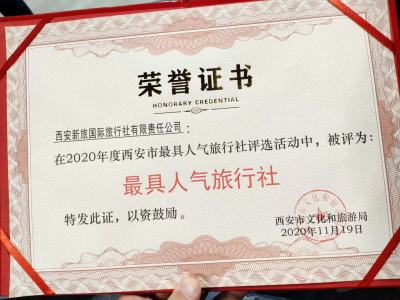 [導(dǎo)讀]西安新旅國際旅行社榮獲最具人氣獎