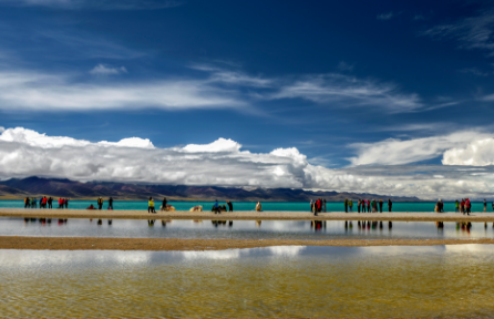 早餐后乘車延青藏線西行轉(zhuǎn)北赴西藏三大圣湖之一的【納木措】(游覽時間1小時)——海拔4718米,它是世界上海拔最高的咸水湖,它位于唐古拉山脈西南腳下,有如鑲嵌在藏北草原上一顆無暇的翡翠。湖的盡頭是白雪皚皚連錦的雪山,和藍(lán)天下茵茵草地,朵朵羊群以及帳篷里飄出的裊裊欽煙,象是到了遠(yuǎn)離城市喧器的仙境。之后返回拉薩。西安旅行社西藏旅游 西藏旅行社到西藏旅游 西安旅行社拉薩旅游 西安旅游公司西藏拉薩旅游線路